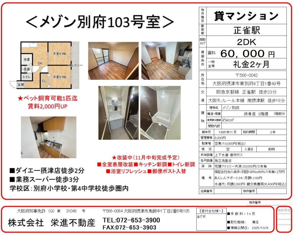 (全室表層改装、キッチン新調、洗面所新調、トイレ新調、浴室改装、郵便受け新調、洗い)