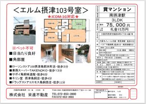 モノレール線南摂津駅自転車約8分・バス7分下鳥飼停3分